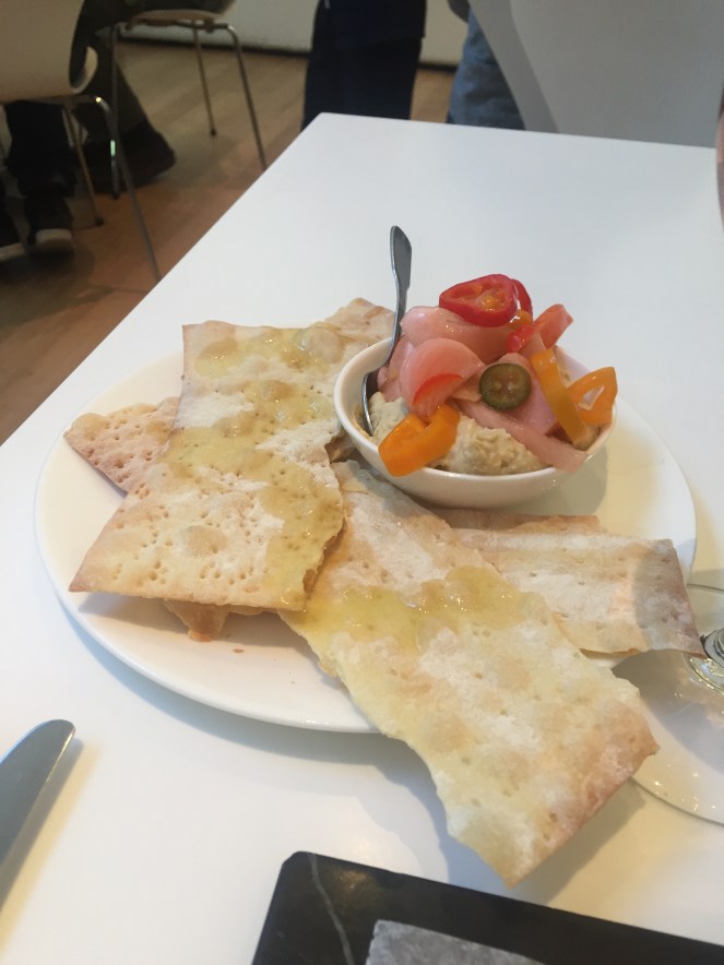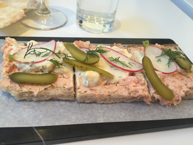 The hummus was in a word, boring (thus, all the unnecessary peppers and pickled vegetables) and the salmon toast, well, it wasn’t was I was expecting. I wish they didn’t use cooked salmon, and the rye bread they used was very off-putting.