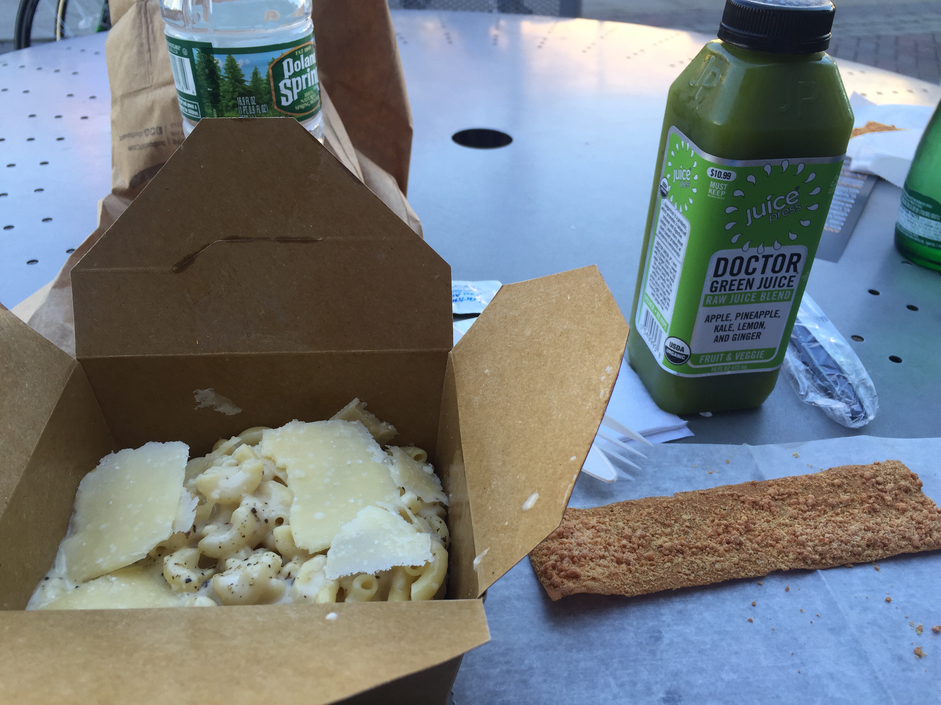 I added a great fruit & vegetable juice from Juice Press: Doctor Green Juice (raw juice blend), which contains fresh apple, pineapple, kale, lemon and ginger. It was refreshing and sweet, and it perked me up. It matched the Cacio e Pepe nicely.