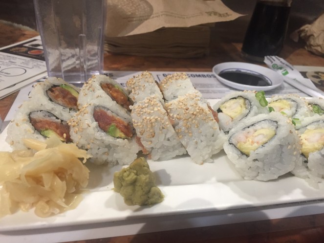 I calculated that it would be at least 10 pm until I and my husband would eat dinner after my friend’s concert on the East Side, so I needed to eat regardless. And, since the sushi is fresh and made fresh…