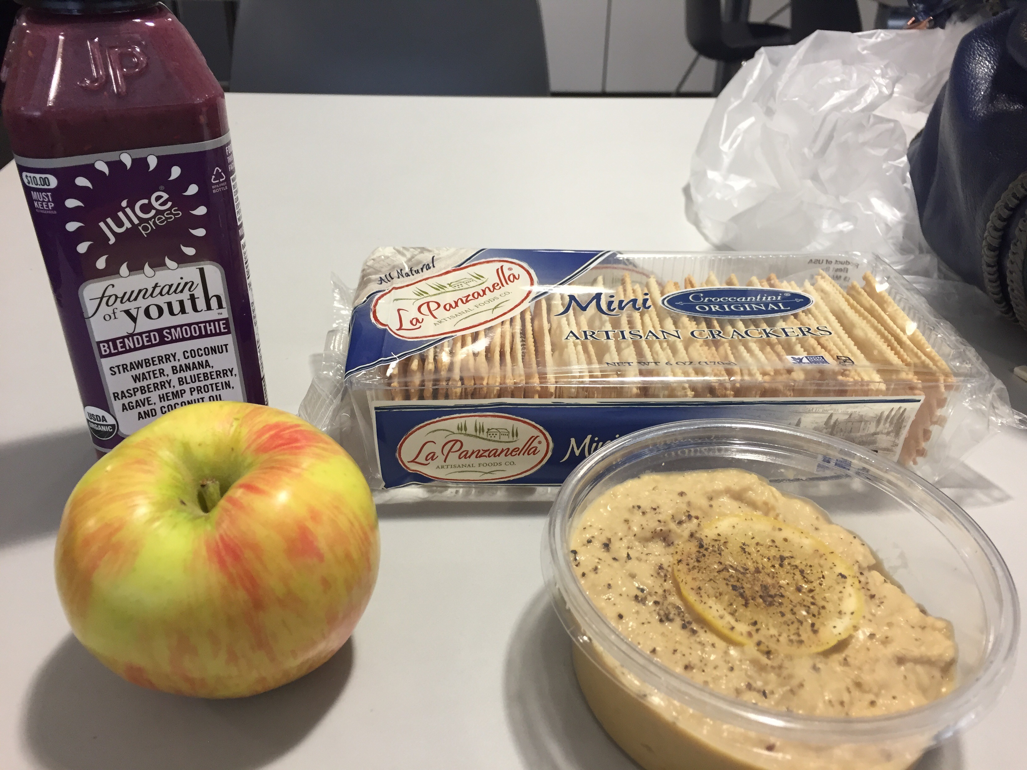 I tried Juice Press’s Fountain of Youth, a smoothie that contained strawberry, coconut water, banana, raspberry, blueberry, agave, hemp protein (really? that’s a thing?) and coconut oil.