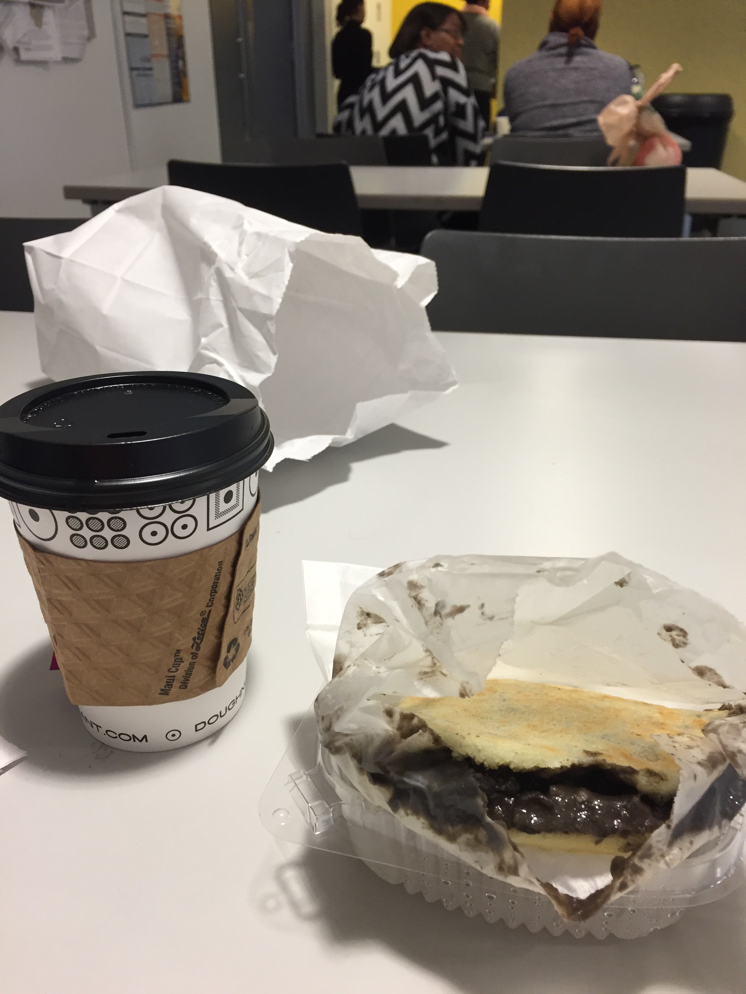 Nancy, the wonderful Venezuelan owner/cook, heated up an arepa (a savory maize flat cake) on the grill, and heated up some black beans.