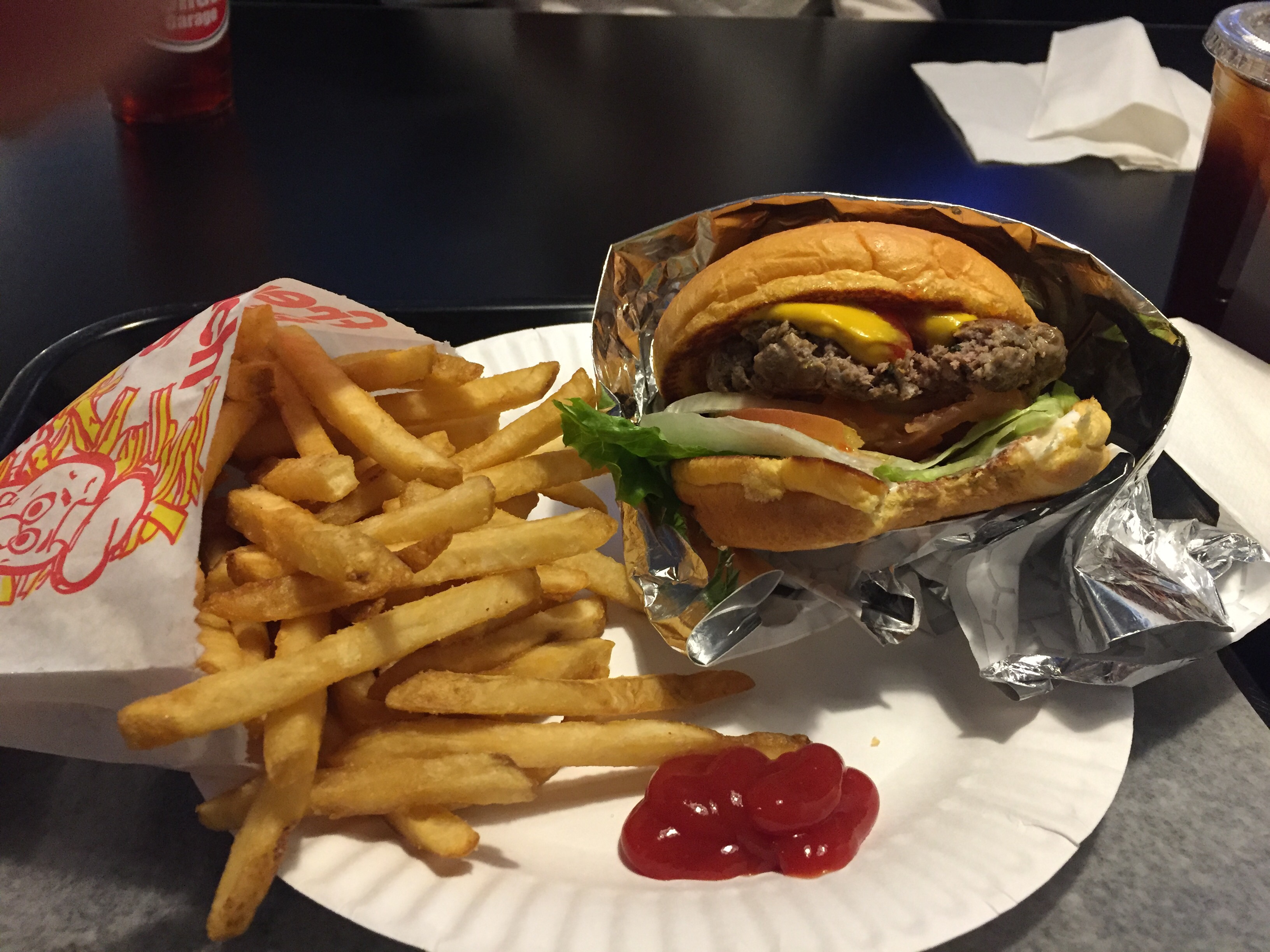 Burger Garage’s lamb burger was really good: it was perfectly cooked, flavored with cumin, lemon juice, pepper and other spices, and was topped with onion, tomato, lettuce and tzatziki sauce, served on a potato bun. I also ordered the regular French fries; they were freshly fried from real potatoes. Simply marvelous!