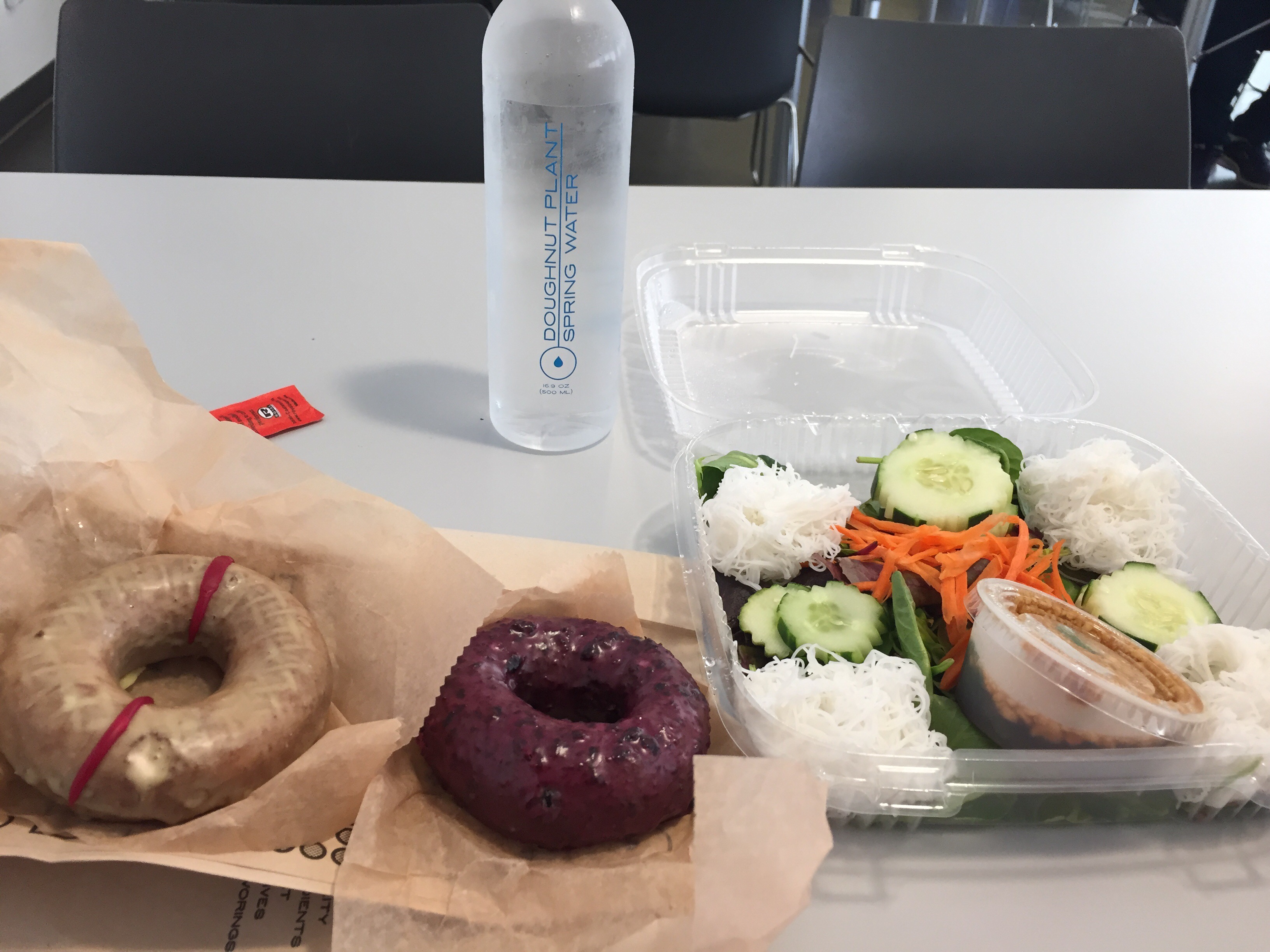And two doughnuts…well, I had a salad, and I just couldn’t decide which one to get: Blueberry (it’s a superfood ;)) and Passion Fruit (a flavor for February that I’ve tried yet. It’s research, people!!)