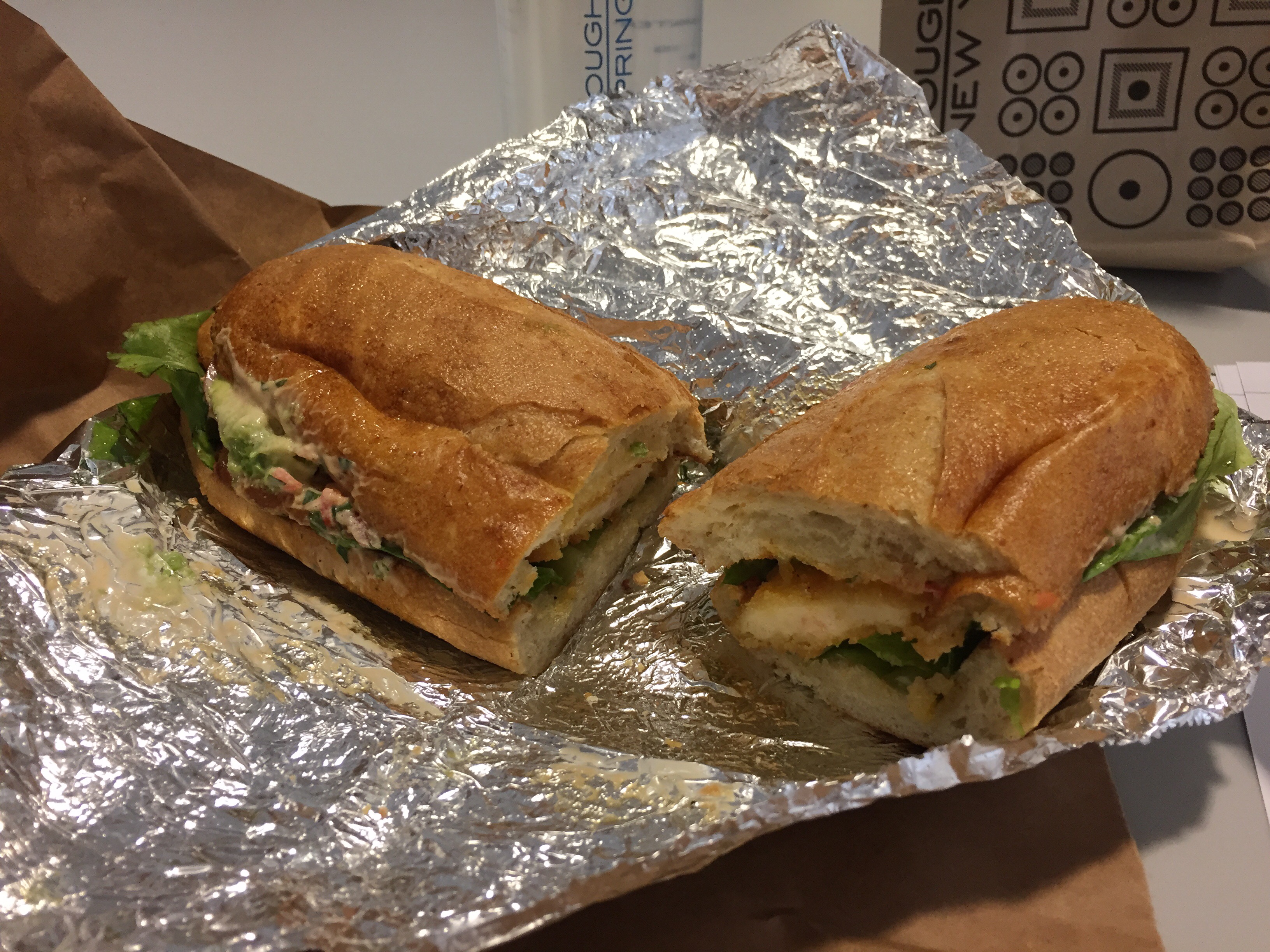 I had to take the sandwich apart (it was huge), and eat it open-faced, this avoiding the bread completely, and the lettuce leaves, which were too oily and greasy.