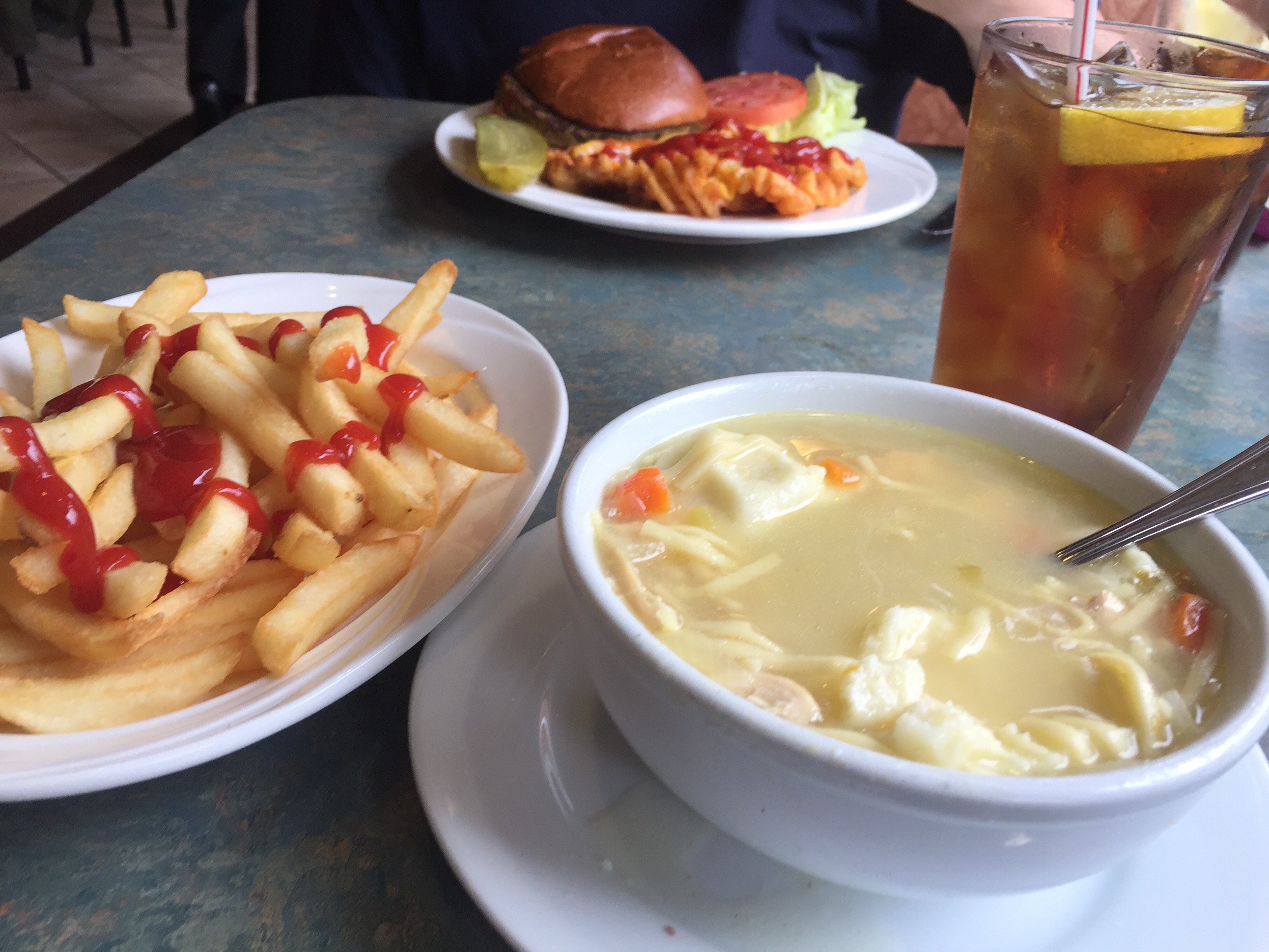 It’s raining a bit, but I don’t mind. I have two lucky things at my side today: my co-worker John and diner matzoh ball soup!