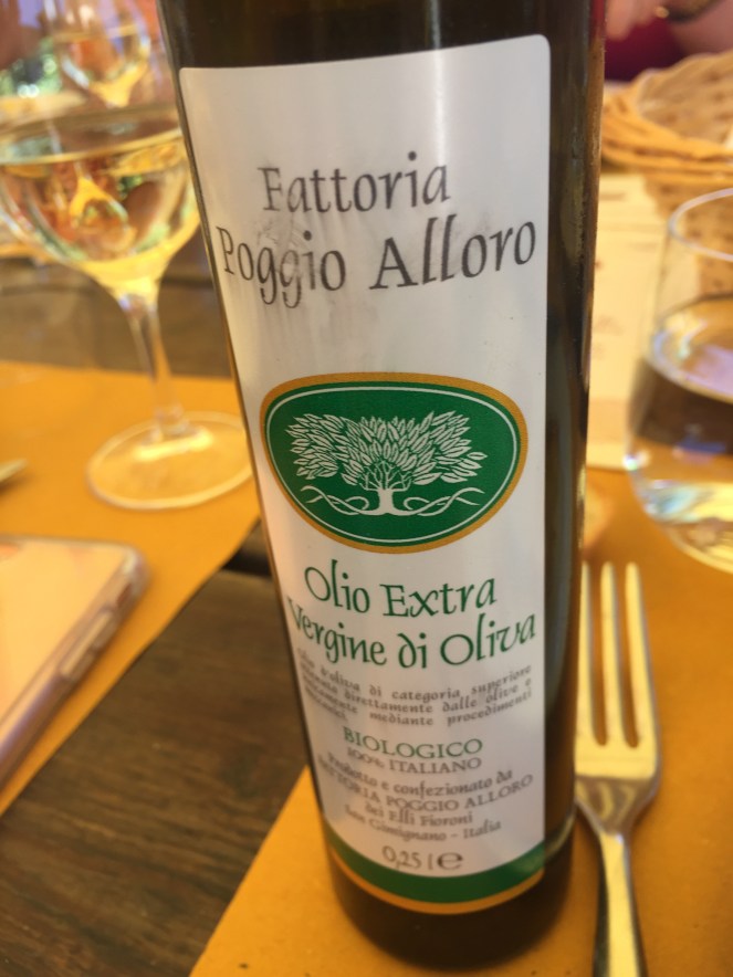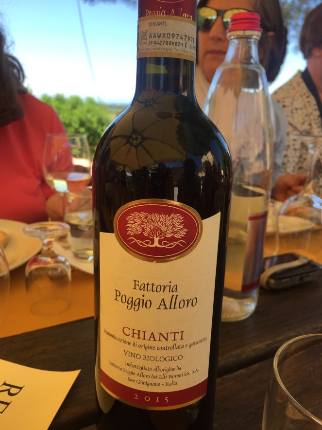 It was a gorgeous day at the farm. Very sunny and warm…by the fourth glass of wine, I felt the sun in my bones, but I didn’t care. I was having the best lunch ever, on a beautiful hillside 2 km outside of San Gimignano, at Fattoria Poggio Alloro, a working vineyard/farm in Tuscany.